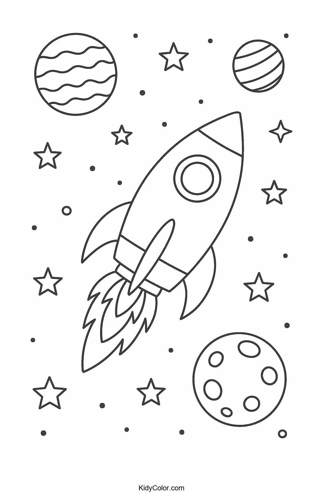 Ignite your child's creativity with this exciting "Rocket in the Stars" coloring page. Perfect for young space enthusiasts, kids can explore their imagination as they bring this adventurous scene to life with vibrant colors.