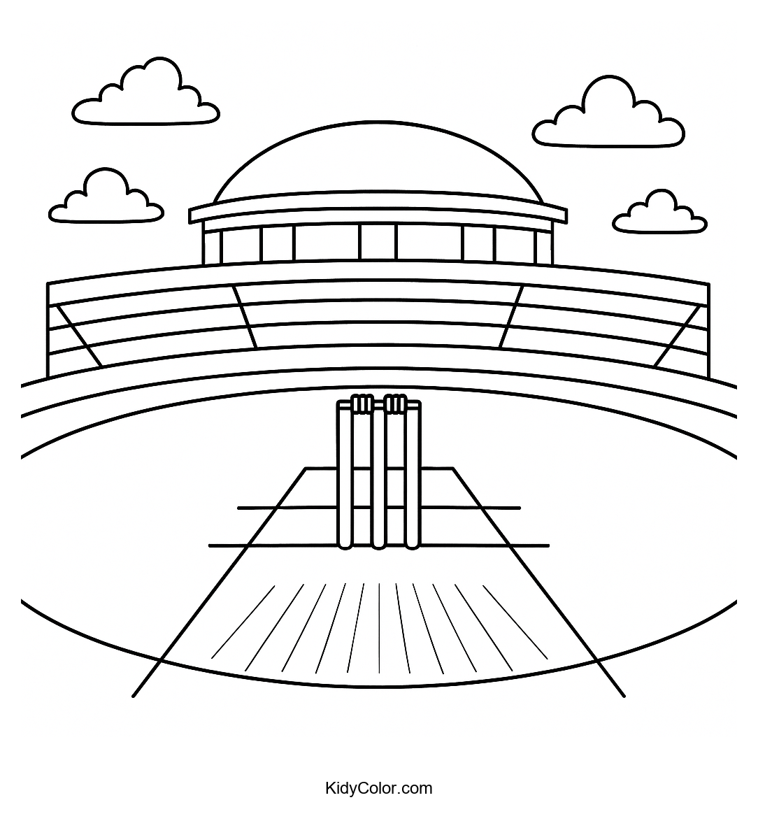 Explore the vibrant world of cricket with this engaging coloring page, featuring a lively cricket stadium scene under the daylight. Perfect for kids who love sports and enjoy adding their colorful touch to action-packed environments.