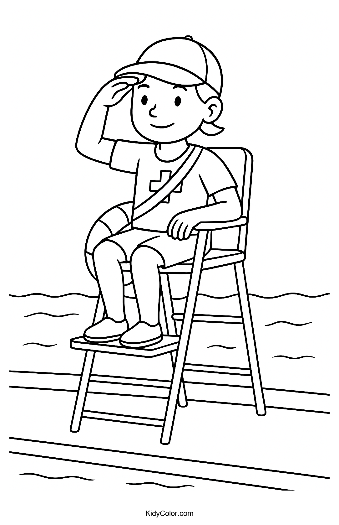 Dive into a fun and safe pool scene with our Lifeguard on Duty coloring page! Perfect for kids who love water adventures, this page features a friendly lifeguard ready to keep everyone safe at the pool. Let your child's creativity splash across the page with vibrant colors!