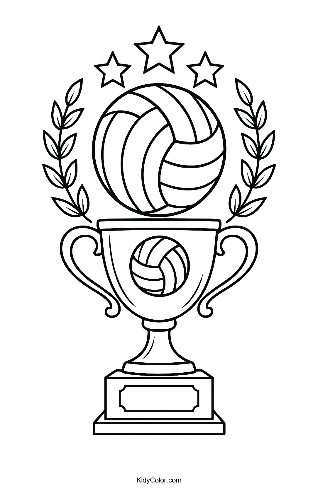Discover a fun and sporty coloring page featuring a Volleyball Trophy surrounded by a Laurel Wreath. Perfect for young sports fans, this page offers an exciting opportunity to blend creativity with a love for volleyball, making it ideal for kids looking to add a touch of victory to their coloring adventures.