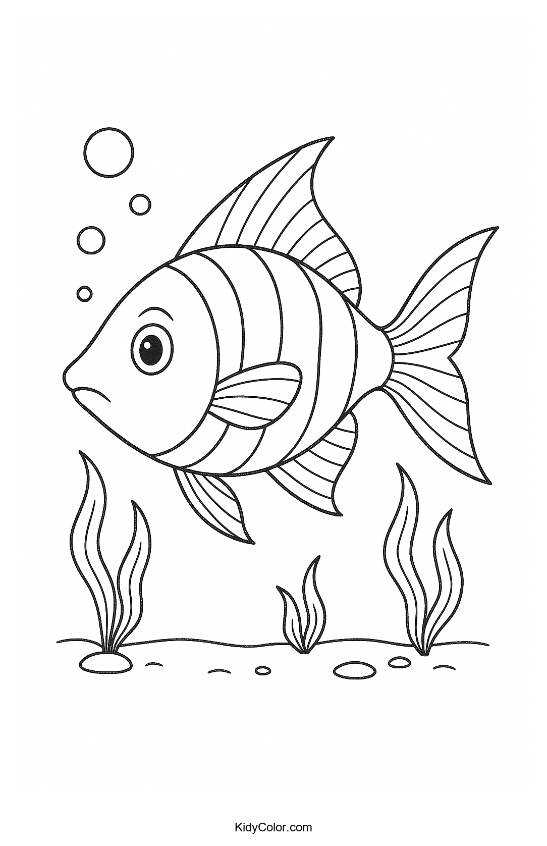 Dive into creativity with this fun underwater coloring page featuring a vibrant fish swimming amidst sea plants. Perfect for sparking a child's imagination while enhancing fine motor skills through coloring.