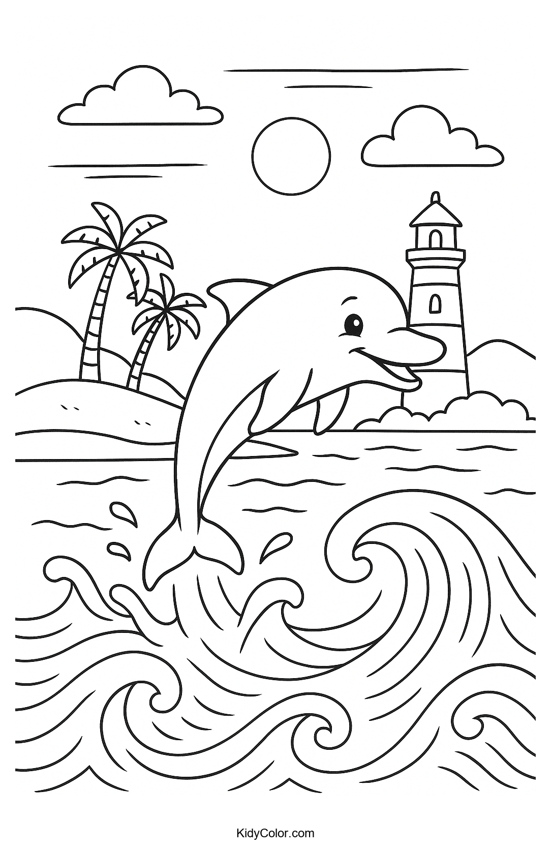 Dive into creativity with our Dolphin Leap Over Coastal Paradise coloring page! Perfect for young ocean lovers, this exciting scene allows kids to explore their imagination while they bring this playful dolphin and serene coastal setting to life with vibrant colors.