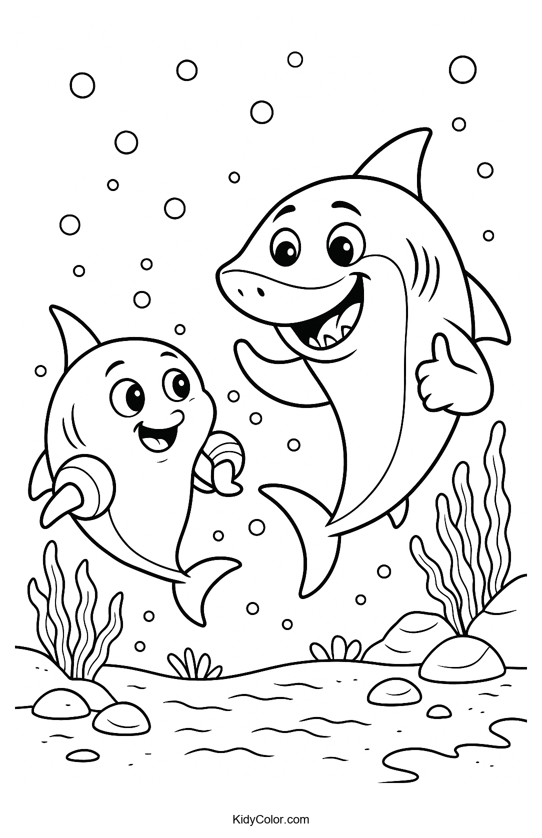 Dive into fun with this exciting coloring page featuring playful sharks and their ocean friends. Perfect for sparking creativity, kids will love exploring underwater adventures through coloring.