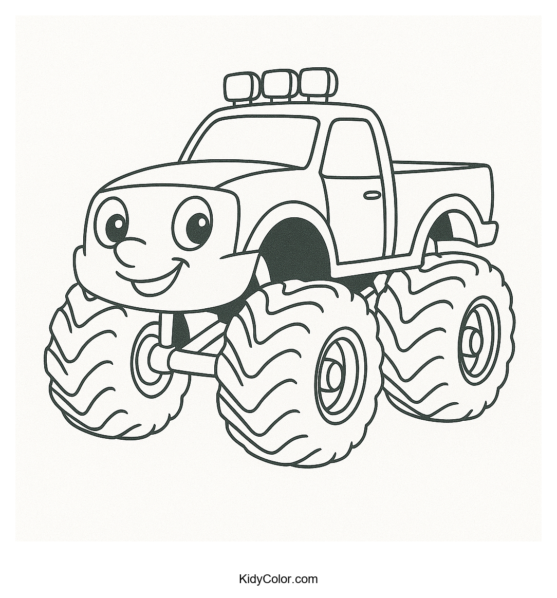 Delight your little one's imagination with this cheerful cartoon monster truck coloring page. Kids will love bringing this friendly-faced vehicle to life with vibrant colors, sparking both fun and creativity during playtime.