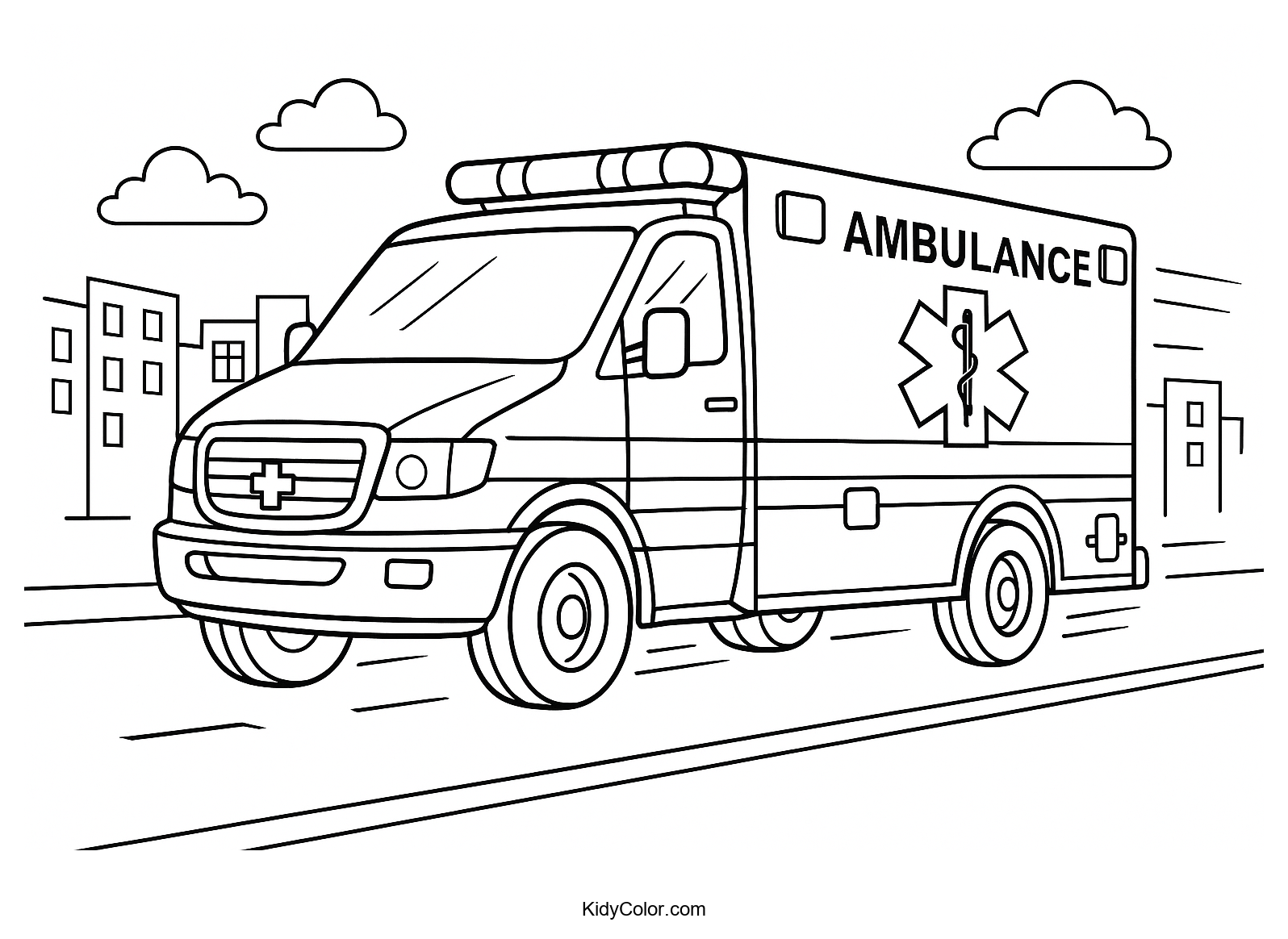 Engage your child's creativity with this dynamic coloring page featuring emergency response vehicles in motion! Perfect for kids who love action and adventure, this page will inspire artistic expression as they color police cars, fire trucks, and ambulances.