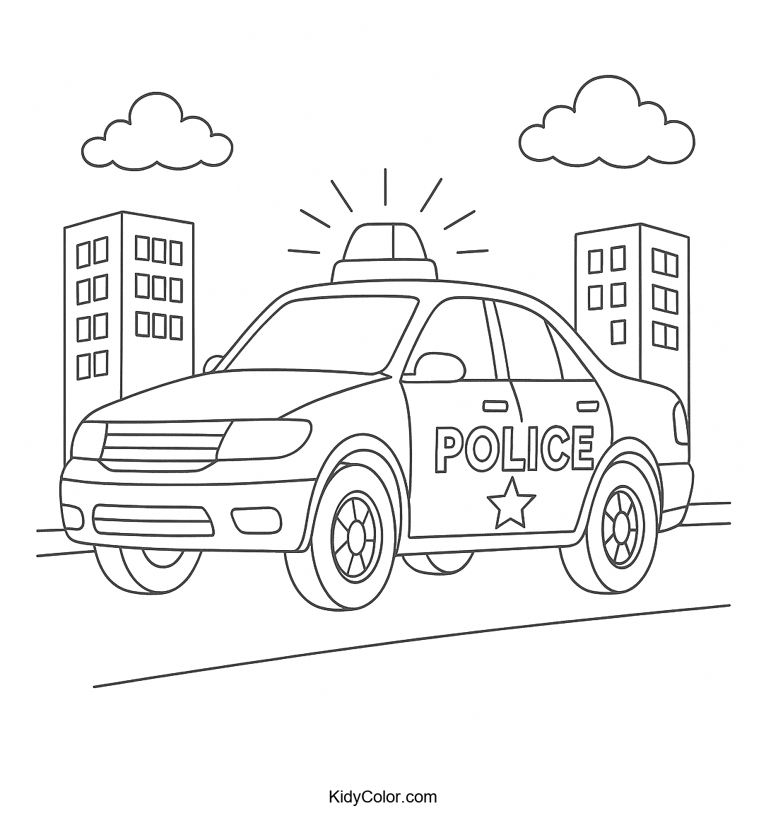 Kids will love bringing this busy city scene to life with our Police Car on City Street coloring page. Perfect for young artists fascinated by vehicles, this page offers an exciting opportunity to explore colors while learning about community helpers.