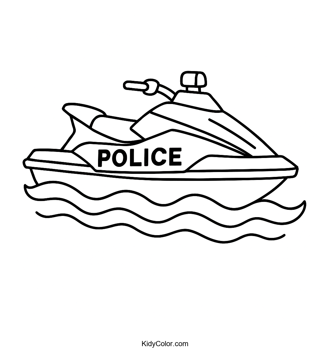 This exciting coloring page features a police jet ski riding over wavy waters, perfect for young artists who love action and adventure. Ideal for fostering creativity, kids will enjoy bringing this dynamic scene to life with their favorite colors.