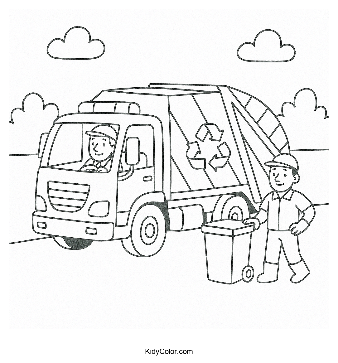 Explore the world of community helpers with this delightful coloring page featuring a garbage truck and a dedicated sanitation worker. Perfect for engaging your child's creativity while teaching them about the importance of keeping our environment clean.