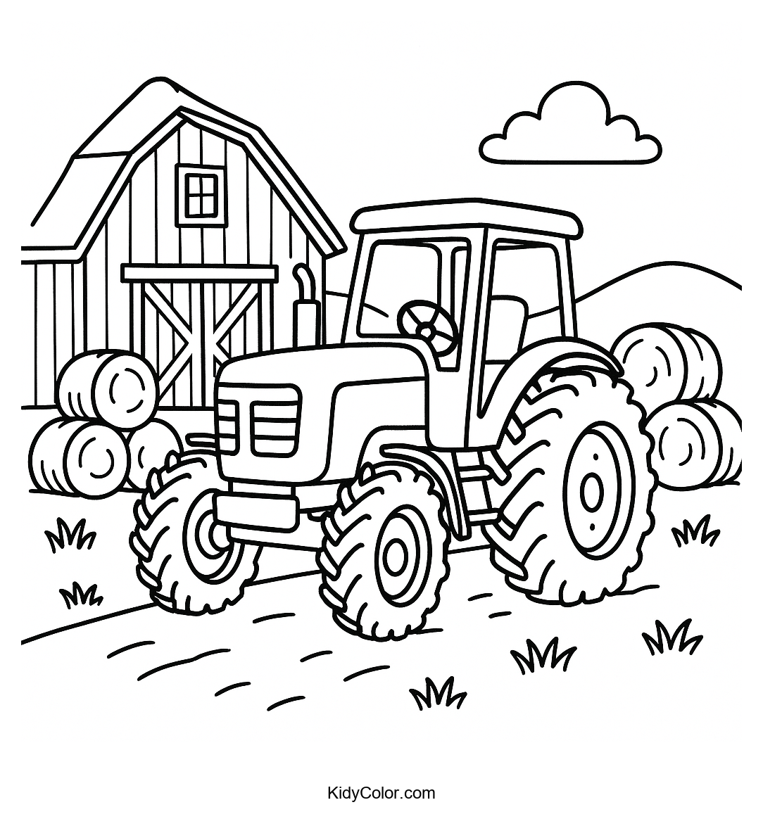 Delight your kids with this fun farm scene featuring a tractor and barn. Perfect for children who love farming and rural adventures, this coloring page offers hours of creative fun and imaginative play.