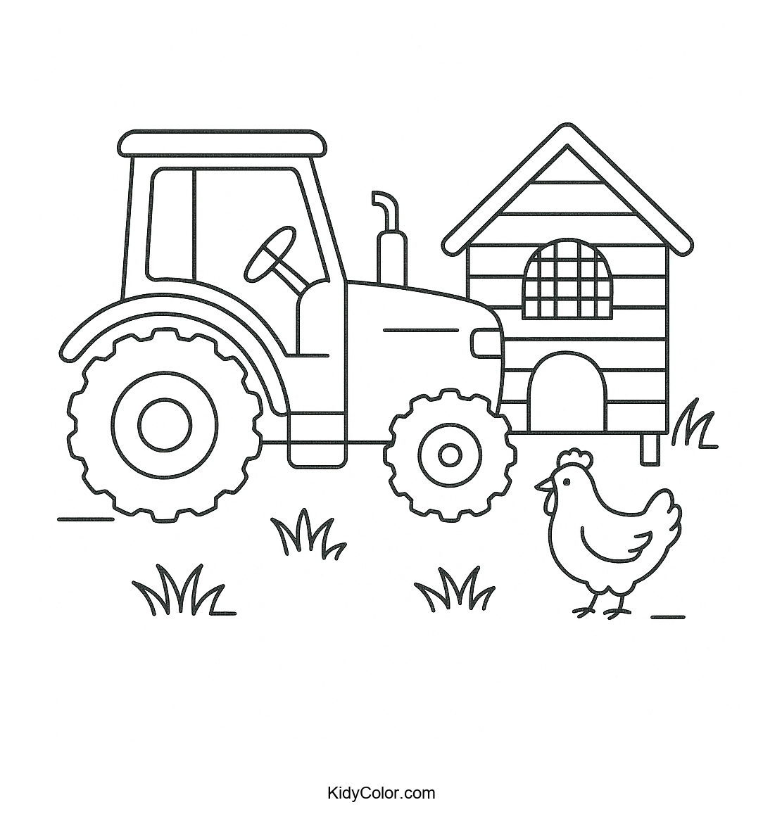 Delight your child with this fun tractor and chicken coop coloring page, featuring a quaint farm scene perfect for sparking creativity and storytelling. Kids will love bringing to life the bustling farm activities with their favorite colors.
