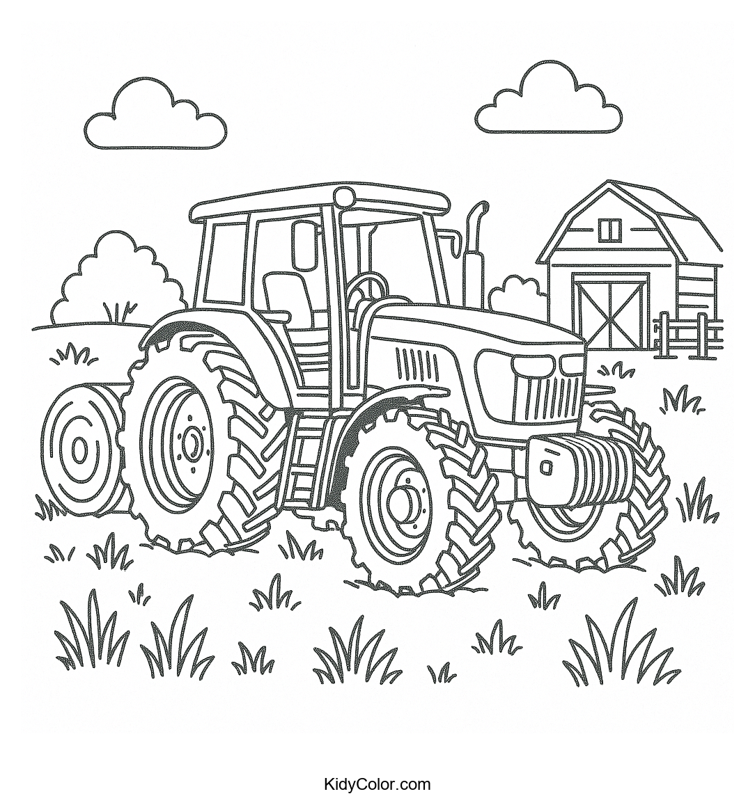 Engage your child's creativity with this Tractor by the Barn coloring page. Featuring a rustic farm scene, it's perfect for young artists who love vehicles and farm life to explore colors and details.