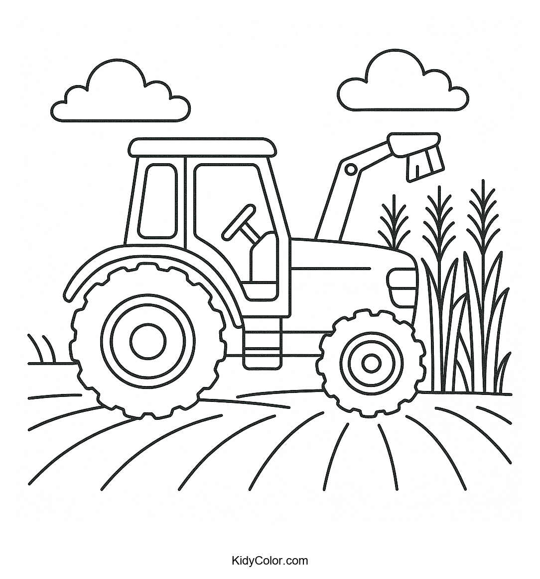 Explore the fascinating world of farming with this detailed coloring page featuring a tractor harvesting tall crops. Kids will enjoy adding vibrant colors to the busy scene, igniting their creativity and love for agriculture.