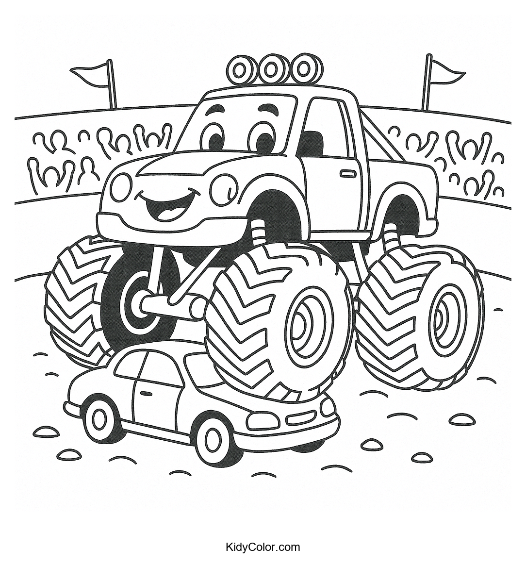 Get ready for high-octane fun with this monster truck coloring page! Kids will love bringing to life the powerful monster truck and the crushed car in this action-packed scene, fostering creativity and motor skills.