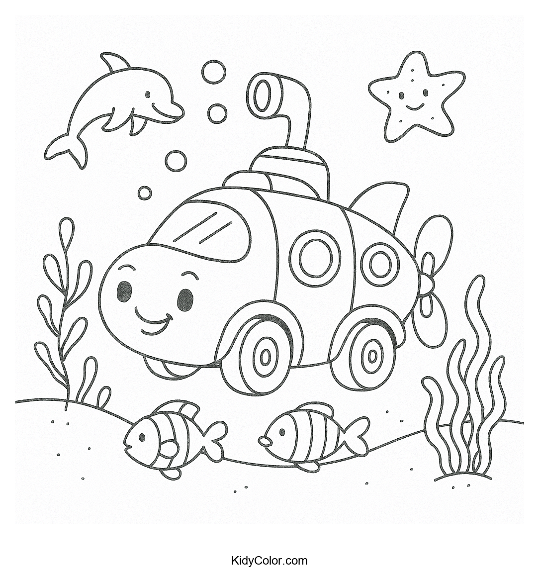 Dive into creativity with this exciting coloring page featuring a submarine car on an underwater adventure. Perfect for kids fascinated by the ocean, it blends aquatic exploration with imaginative play as they bring the vibrant underwater world to life with colors.